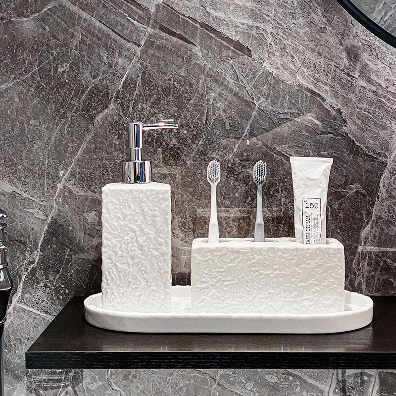 Bathroom Accessories Set, Shampoo Bottles Marble Texture Mouthwash Cup