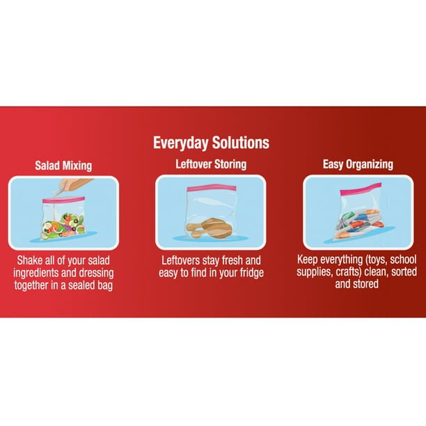 About this itemProduct detailsGreat Value Fresh Seal Double Zipper Storage Bags are gallon-sized bags that help you store a variety of items. Its fresh seal Snap ‘n Click technology locks in freshness and keeps your food fresh for a long time. You can directly defrost or reheat food in the microwave using this zipper bag. Use it to shake all your salad ingredients and dressing together or to make leftovers stay fresh and easy to find in your fridge. Make a quick disposable bag for frosting by sealing this bag and snipping off one corner. Keep everything like toys, school supplies and crafts clean, sorted and stored in these bags. It is easy to carry while traveling and can help keep your toiletries, electronics and accessories organized and protected. Be prepared for any storage situation with Great Value Fresh Seal Double Zipper Storage Bags. Great Value products provide families with affordable, high-quality grocery and household consumable options. With our wide range of product categories spanning grocery and household consumables, we offer you a variety of products for your family’s needs. Our products are conveniently available online and in Walmart stores nationwide, allowing you to stock up and save money at the same time.Great Value Fresh Seal Double Zipper Storage Bags, Gallon, 80 Count: Multipurpose gallon size storage bags Seals in flavor and freshness for food items with fresh seal zipper Convenient for traveling Great for organizing small school or household items Snap n’ Click double zipper closure error:We aim to show you accurate product information. Manufacturers, suppliers and others provide what you see here, and we have not verified it. See our disclaimer