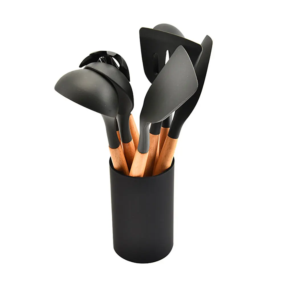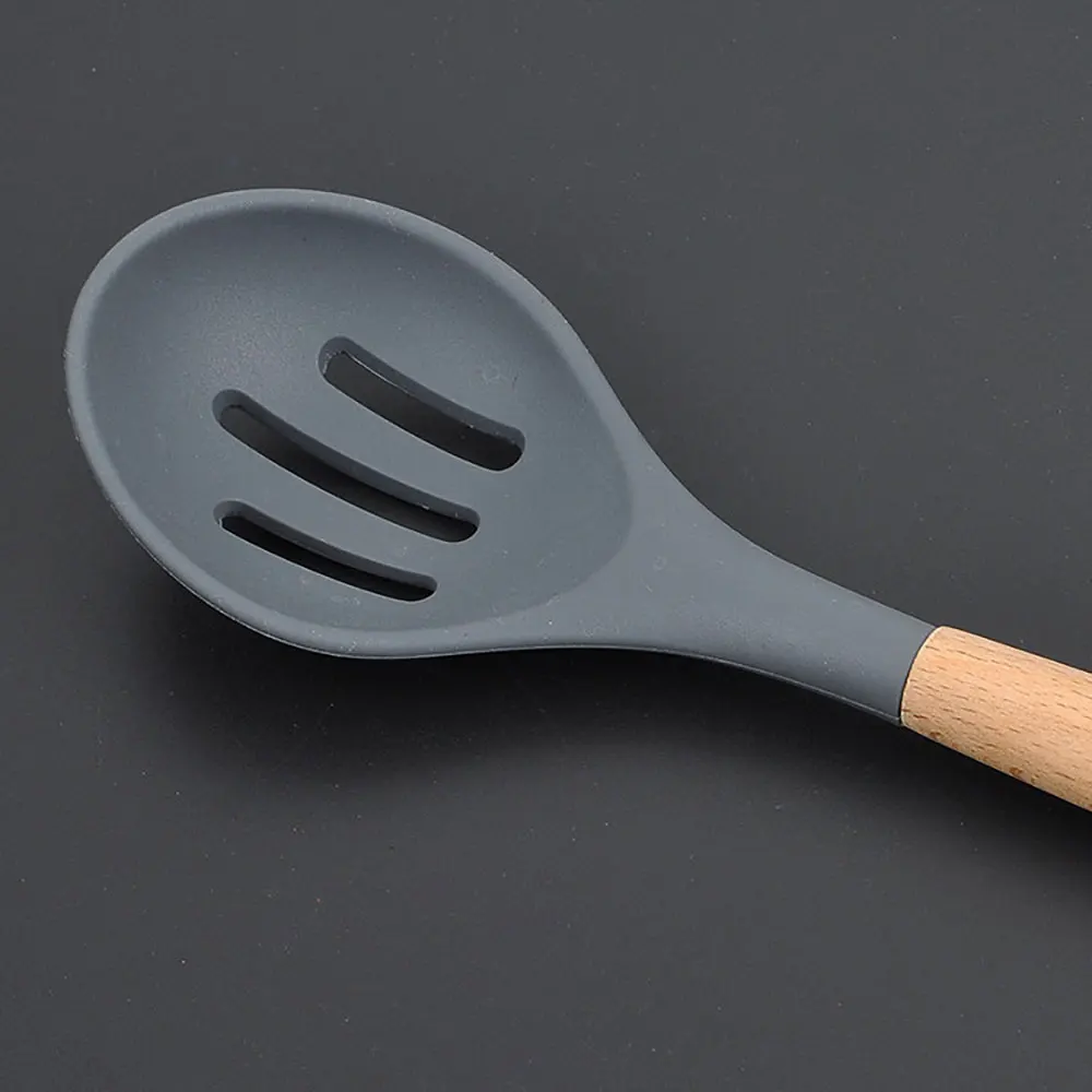 Silicone world Cooking Kitchenware Tool Silicone Utensils With Wooden Multifunction Handle